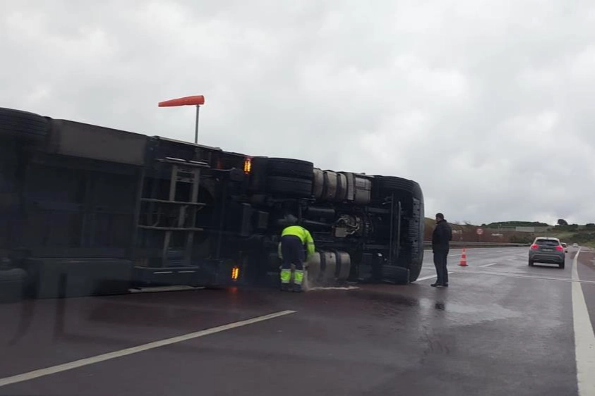 Bursa İstanbul otobanı Orhangazi Gebze arasındaki bir viyadükte tır fırtınanın etkisiyle devrildi.