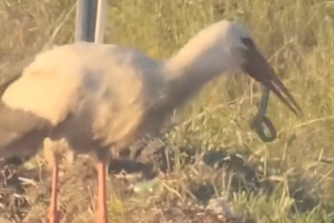 Leylek köyü Karaağaç'ta bir leylek gördüğü yılanı tek hamle ile midesine indirdi. O anlar bir vatandaş tarafından saniye saniye kayda alındı.