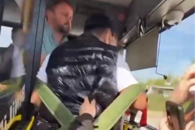 Şoför, öğrenciyi sakinleştirmeye çalışarak, "Terbiyesizlik yapma" diyerek uyardı ve fiziki müdahaleye dönüşmesini önlemek amacıyla öğrenciyi tuttu.