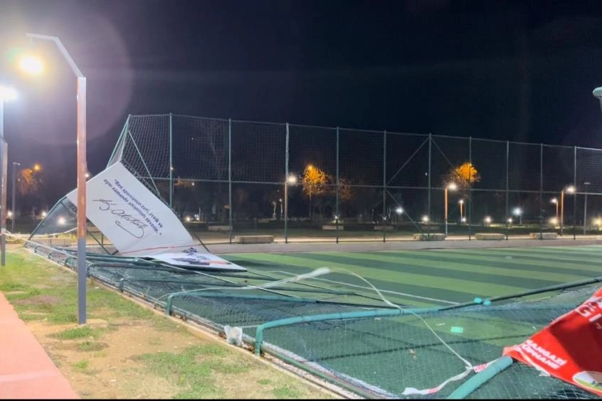 Merkez Osmangazi ilçesi Soğanlı Mahallesi'nde bulunan Soğanlı Millet Bahçesi'nin içindeki halı saha, şiddetli lodos yüzünden yerle bir oldu.