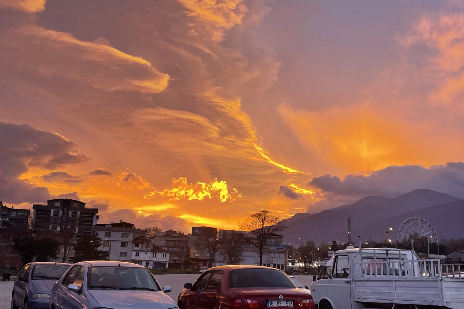 Bursa'da gece yarısından beri etkili olan kuvvetli fırtına sonrası sabah saatlerinde gün doğumu ve bulutlar güzel görüntü oluşturdu.