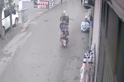Yıldırım ilçesi Esenevler Mahallesi'nde bulunan bir terlik standı, rüzgarın etkisiyle savrulurken; dükkan sahibi son anda standı tuttu. O anlar, bir apartmanın güvenlik kamerasına yansıdı.