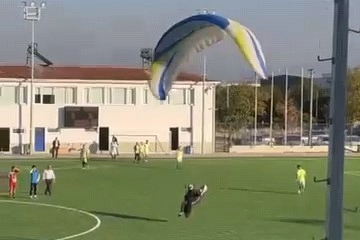 Uludağ eteklerinden uçuş yapan paraşüt sporcusu ve mobilya firması işçisi Adem Keskin, evine yakın olan amatör futbol sahasını gözüne kestirdi. Havadan sahanın müsait olduğunu gören paraşüt sporcusu, süzülerek sahaya indi. Paraşütçüyü gören futbolcu ve taraftarlar büyük şok yaşarken, onu ayakta alkışladılar. Uludağ eteklerinden paraşütle uçuş yapan mobilya firması işçisi Adem Keskin, 2 yıl önce de mesaiye geç kalmamak için çalıştığı fabrikanın bahçesine iniş yapmıştı.