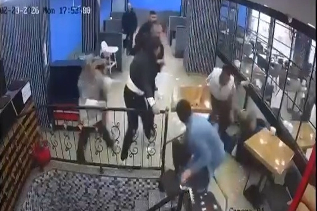 Masa ve sandalyeler ile iş yerindeki bazı eşyaları birbirine atan taraflar diğer müşterilerin araya girmesi ile güçlükle ayrılırken, kavga güvenlik kamerasına yansıdı.