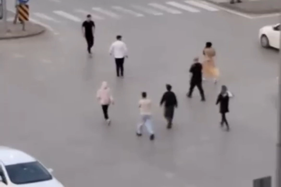 Sözlü tartışma kısa sürede alevlenerek kavgaya dönüştü. Kavga, bir süre sonra akan trafiğin ortasında kaldı. Tehlikeli anlar saniye saniye amatör kamera ile kaydedildi.
