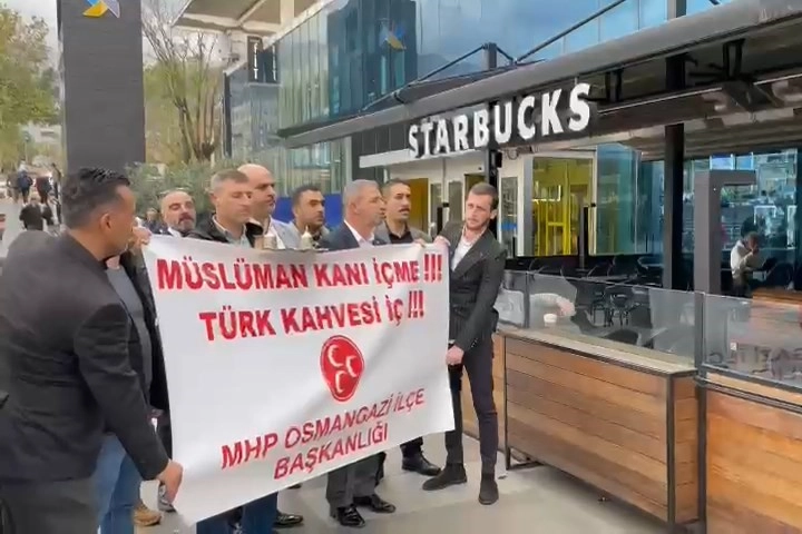 Bursa'da toplanan MHP Osmangazi İlçe Başkanlığı üyeleri, ellerindeki Türk kahveleriyle gençlerin yayına gitti. Açtıkları pankartla, 'Müslüman kanı içme. Türk kahvesi iç' mesajı verdi.