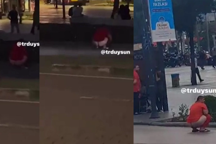 Şehrin merkezindeki bir meydanda, bir adamın 2 gündür aynı noktaya büyük tuvaletini yaptığı görüntüler çıktı.