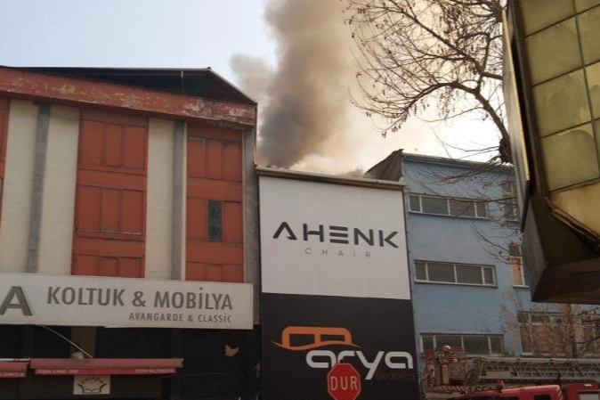 Yangın, saat 12.30 sıralarında Mahmudiye Mahallesi Osmanbey Caddesi'nde 3 katlı mobilya imalathanesinin çatısında meydana geldi.