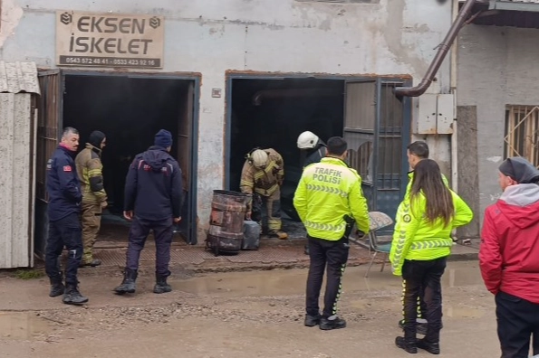 İş yerini yoğun duman kaplarken, çalışanların ihbarıyla olay yerine itfaiye, polis ve sağlık ekipleri sevk edildi.