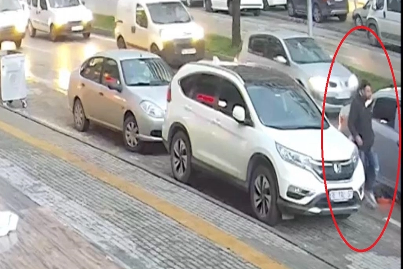 Yol ortasında durdurulan araçtan inen Emrah Işık, yanında bulunan turuncu ve lacivert renkteki montu yere atıp ayağı ile aracın altına iterek kaçtı.