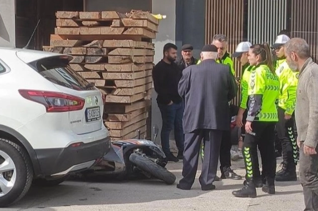 Cadde üzerinde seyir halinde olan Sürücü Recep K.(81) yönetimindeki 16 ADB 826 plakalı otomobil, Kılıç sokaktan çıkan Sürücü İlker B.(20) yönetimindeki 34 KFR 287 plakalı motosiklete yandan çarpıp 10 metre sürükledi.