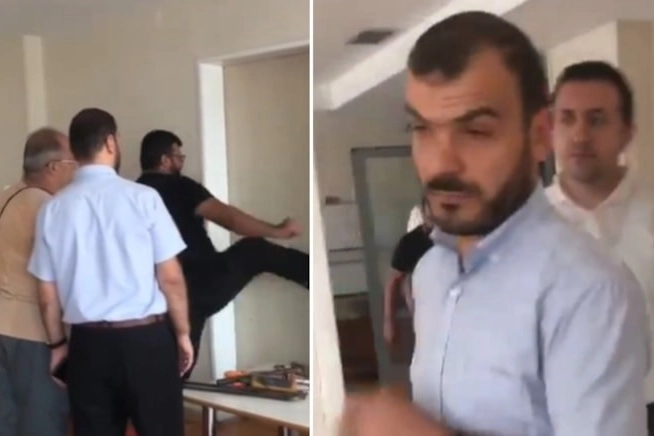 Açamayınca da çekiç ve tekme atarak kapıyı kırdı. Kadın müdür yardımcısı o anları cep telefonu kamerası ile görüntüledi. Görüntülerin basına yansımasının ardından, Milli Eğitim Bakanlığı müdürü açığa aldı.