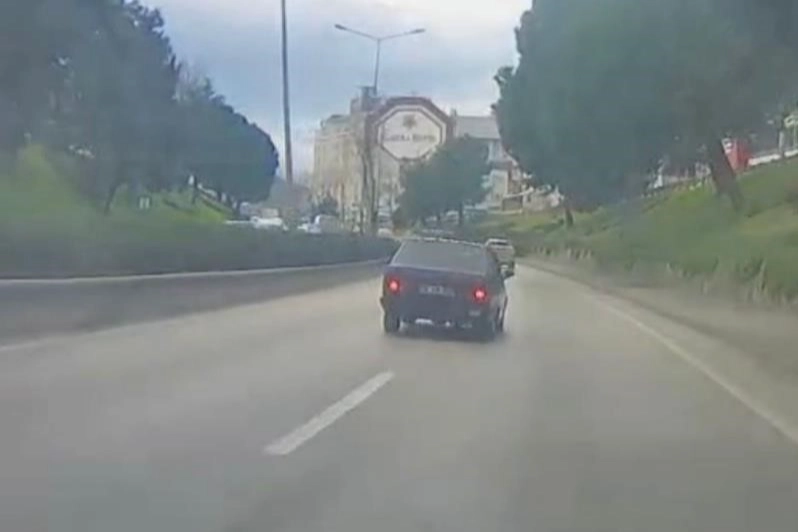Yaşanan tehlikeli anlar trafikteki başka bir aracın kamerasına saniye saniye yansıdı.