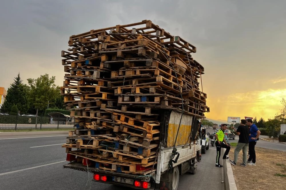 Karayolunda tehlikeli nakliyat işi yapan sürücü İnegöl girişinde İnegöl Emniyet Müdürlüğü Trafik Büro Amirliği ekiplerince durduruldu.