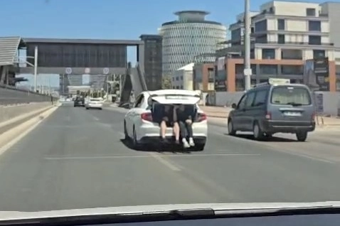 Osmangazi ilçesi İstanbul Yolu üzerinde seyir halindeki bir otomobilde yolcular bagajda taşındı.