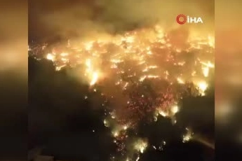 Yangının mahallenin çevresini sardığı ve hızla ilerlediği görülüyor.