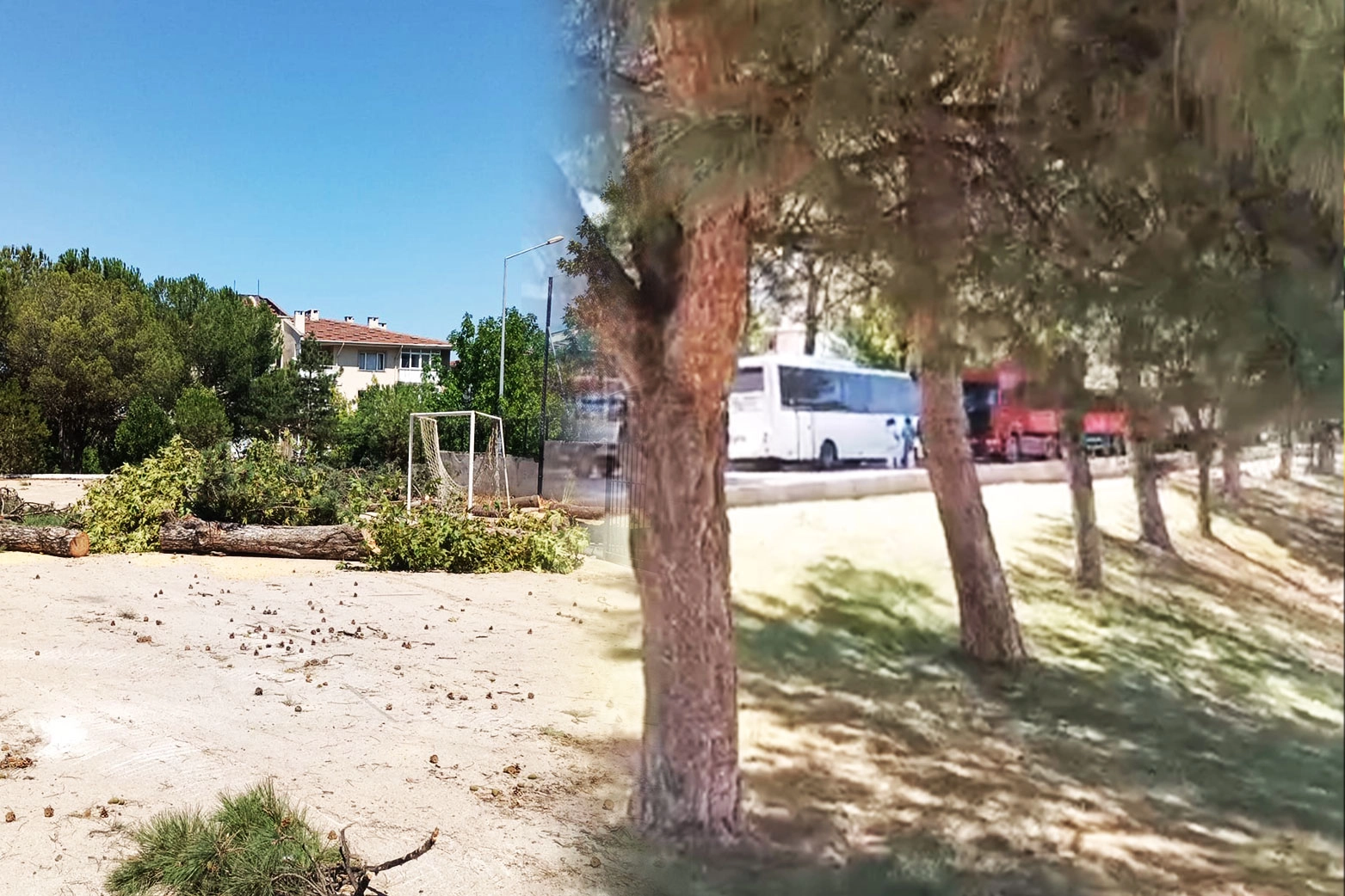 Yıldırım ilçesine bağlı Mimarsinan mahallesindeki Ahmet Vefik Paşa Anadolu Lisesi'nin bahçesinde bulunan çam ağaçları kesildi.
