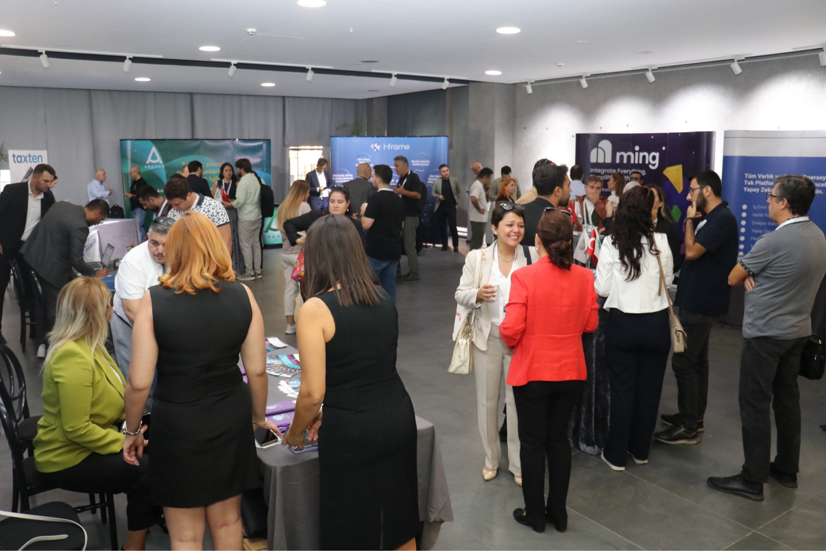 Dijital dönüşüm hizmeti veren çok sayıda firmanın 10’ar dakikalık sunumlarının ardından fuaye alanında kurulan standlarda ikili iş görüşmeleri gerçekleştirildi.