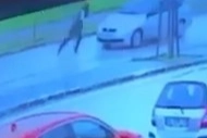 Bursa’da canı pahasına hareket halindeki bir otomobilin önüne atlayan kadın, güvenlik kameralarına yansıdı.