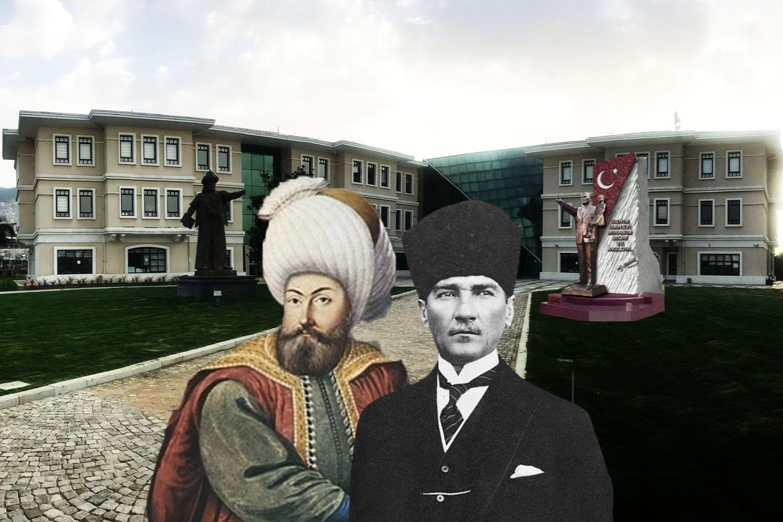 Bir tarafta Osmanlı Devleti’nin kurucusu olan Osman Gazi heykeli, diğer tarafta ise Türkiye Cumhuriyeti’nin kurucusu Mustafa Kemal Atatürk’ün heykeli, belediyeye gelen vatandaşları karşılayacak.