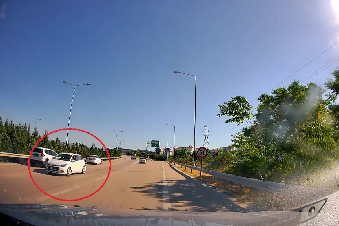 Otobanın orta şeridinde tersten ilerleyen kadın sürücünün panik yaşadığı anlar saniye saniye araç içi kamerasına yansırken, yaşanan olayda şans eseri kaza olmadı.
