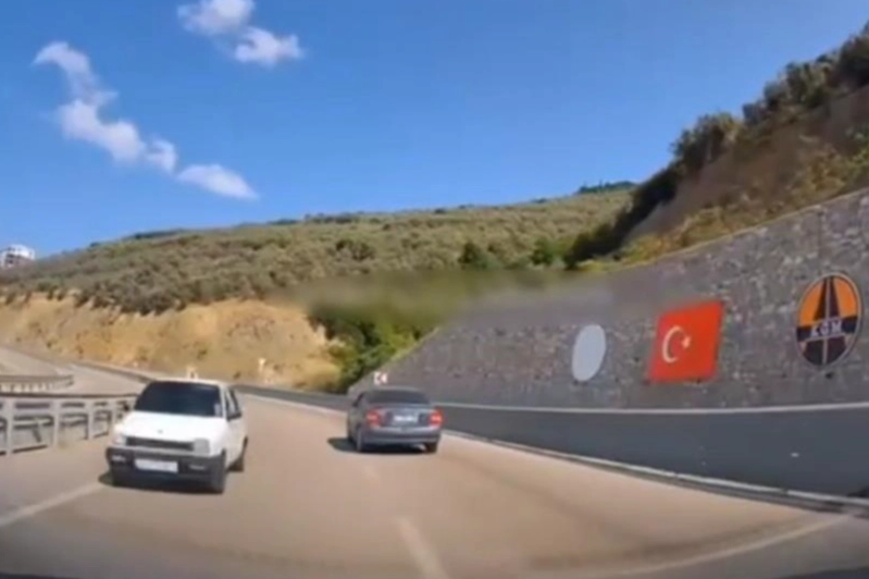 İstanbul İzmir otobanı Gemlik bağlantısında ters yöne giren bir otomobil, hızla ilerleyerek karşı yönden gelen sürücülere zor anlar yaşattı.