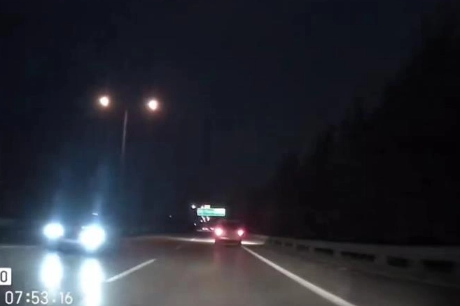 Sürücülerin 100 kilometreyi aşan hızda gittiği yolda facianın eşiğinden döndüğü anlar kamera ile görüntülenirken, şans eseri kaza meydana gelmedi.