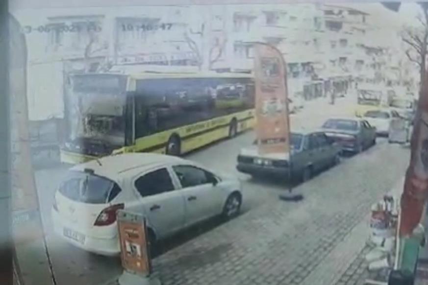 Park halindeki bir kamyona arkadan çarpan otobüs, çarpmaya rağmen gaz kesmeyip kamyonu itmeye devam edince olayda 3 farklı araç daha zarar gördü.