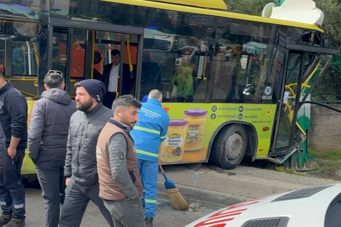 Yıldırım ilçesi Siteler Mahallesi'nde öğle saatlerinde freni patlayan bir belediye otobüsü önce park halindeki araca sonra da karşı yöne geçip bir direğe çarptı.