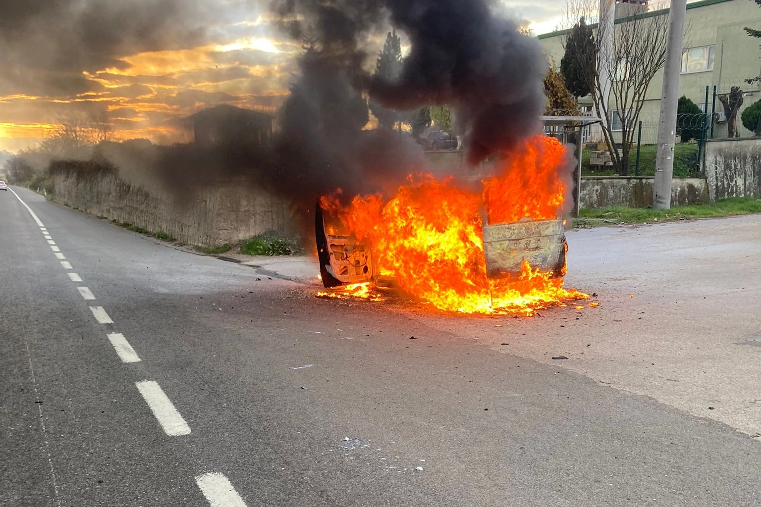 O sırada araç alev aldı. İhbarla olay yerine itfaiye ekipleri sevk edildi.