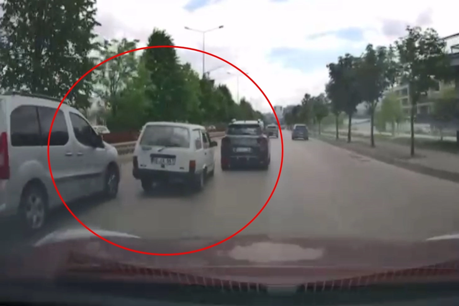 Diğer sürücülerin ani fren yapmasıyla olası bir kazanın önüne geçilirken, o anlar başka bir aracın kamerasına yansıdı.