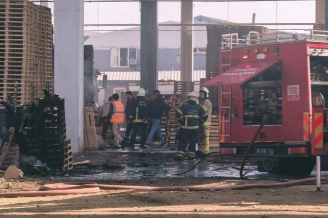 Yangın saat 12.30 sıralarında İnegöl OSB 5. Cadde üzerinde faaliyet gösteren palet fabrikasında meydana geldi.