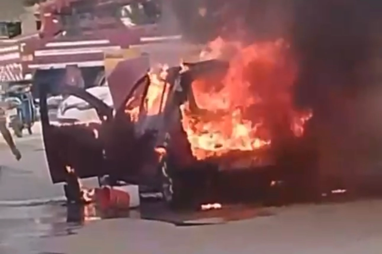 Alevler kısa sürede tüm aracı sararken ihbar üzerine bölgeye itfaiye ve polis ekipleri sevk edildi.