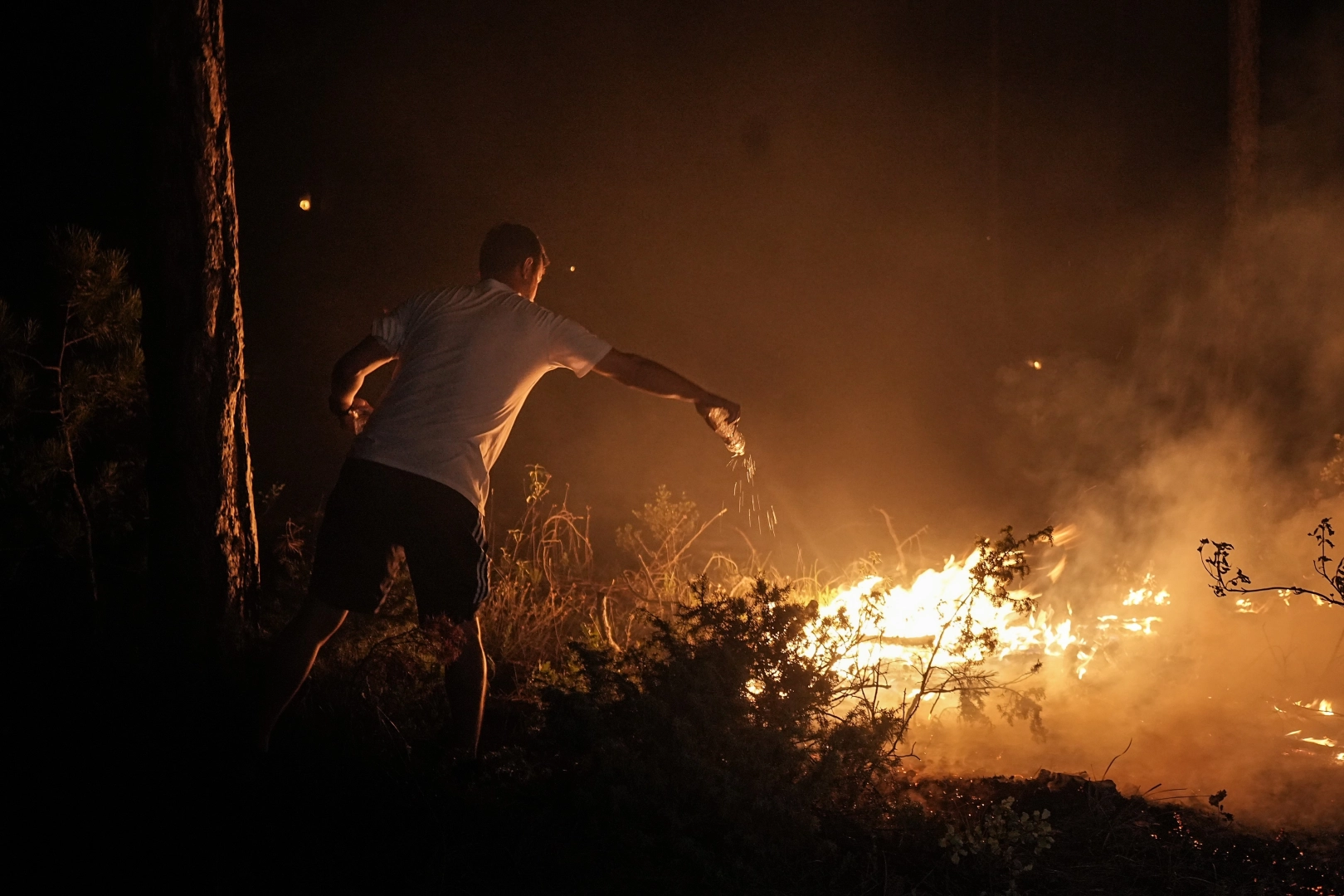 Havanın kararmasıyla birlikte alevler daha da belirgin hale gelirken, yangının oluşturduğu tehlike gözler önüne serildi.