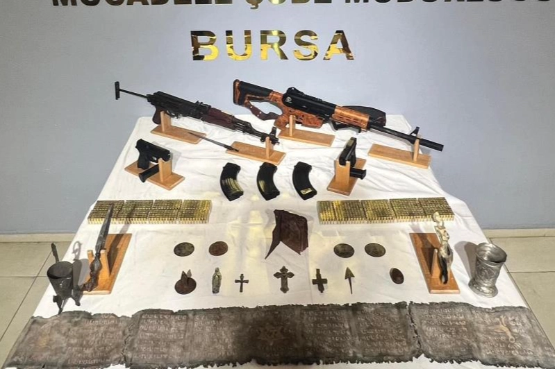 Bursa'nın Yıldırım ilçesinde silah imal edip ticareti yapıp, aynı zamanda tarihi eser kaçaklığı yapan G.A. Ö.A. M.B. ve F.B. isimli şahısların adreslerine Bursa İl Emniyet Müdürlüğü Kaçakçılık ve Organize Suçlarla Mücadele Şube Müdürlüğü ekiplerince eş zamanlı operasyon düzenlendi.
