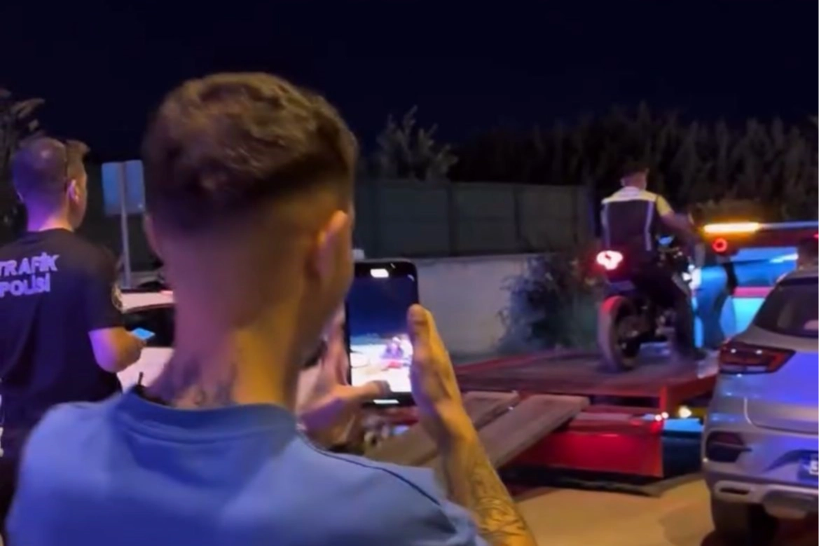 Bursa'nın Osmangazi ilçesinde trafiği tehlikeye atan bir motosiklet sürücüsü, plakasız aracıyla tek teker üzerinde ilerlediği anları sosyal medyada paylaştı. Görüntülerin kısa sürede yayılması üzerine aynı sürücüyle yolda karşılaşan polis, şahsı yakalayarak trafik polisi çağırdı.