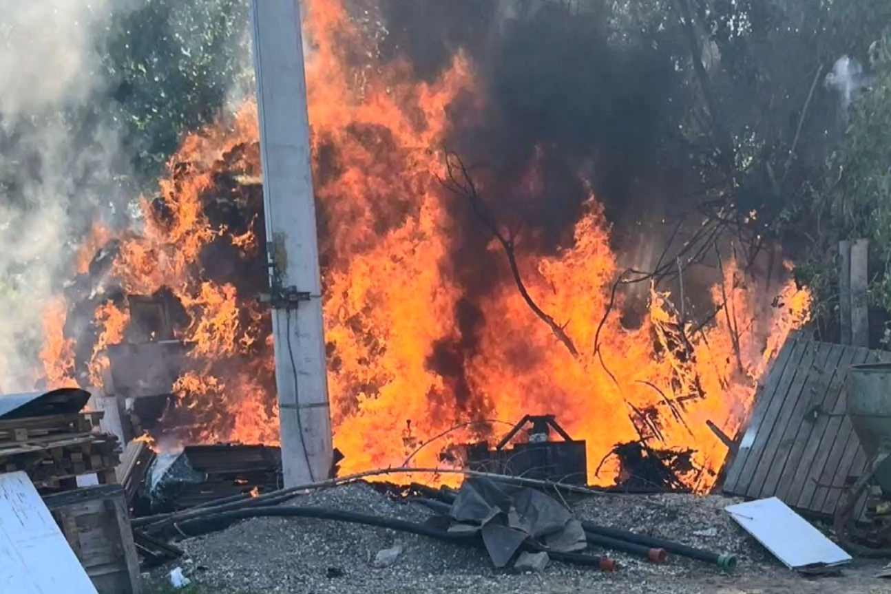 Yangında, 1000'e yakın saman balyası, su motoru ve bir motosikletin yanarak kullanılamaz hale geldği öğrenildi.