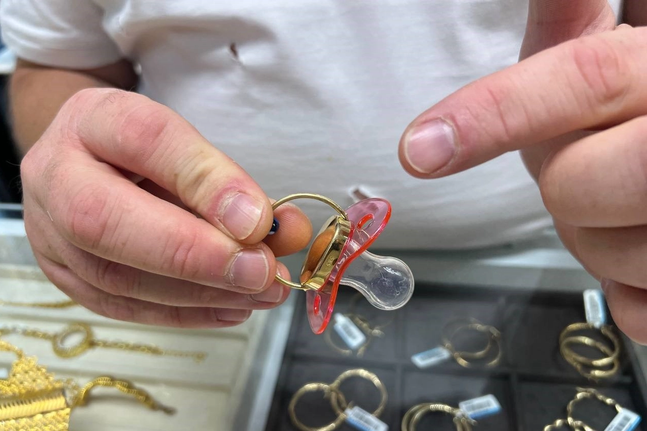 İnsanların son zamanlarda altını sadece yatırım aracı olarak görmelerinden dolayı altın takılara rağbet azaldı. Bursa'da işlerini hareketlendirmek isteyen bir kuyumcu yüzük, küpe, saat, bilezik gibi aksesuarlar dışında raflarında 3 yıldır altın emziğe de yer veriyor. Altın emzikleri 4 bin 230 liradan satışa sunduklarını söyleyen mağaza sorumlusu Bahadır Ablak, vatandaşların torunlarına ve yakın akrabaların yeni doğan bebekleri için hediye aldıklarını söyledi. Altın emziğin sadece maddi bir hediye olarak görülmemesi gerektiğini belirten Ablak, çocukluğa dair güzel bir anı da olabileceğini söyledi.