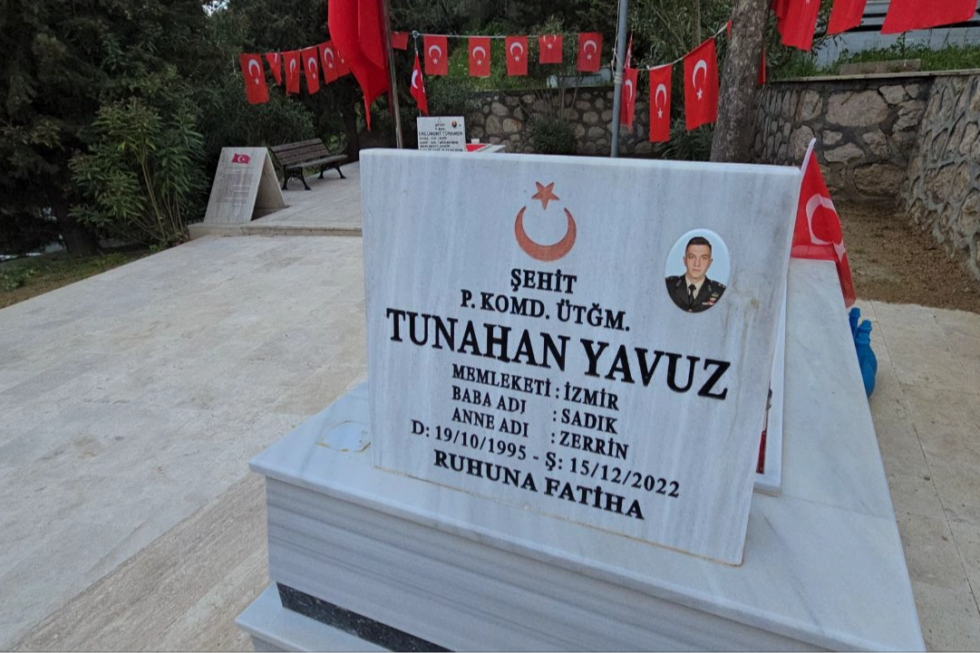 Ömerbey Mahallesi'ndeki şehitlikte, şehit Tunahan Yavuz'un mezarı başına ailesi tarafından konulan temsili minyatür komando heykelinin yerinde olmadığı şehidin annesi Zerrin Yavuz tarafından fark edildi.
