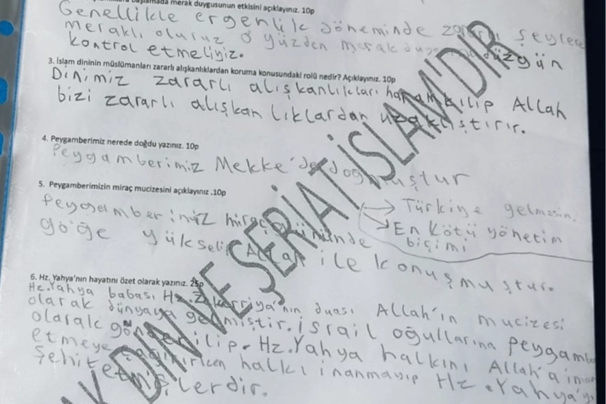 İddiayı sosyal medyaya taşıyan Eğitim-İş Bursa Şube Başkanı ve Laiklik Meclisi Sözcüsü Özkan Rona, sınav kağıdı üzerinden şeriat propagandası yapıldığını söyledi.