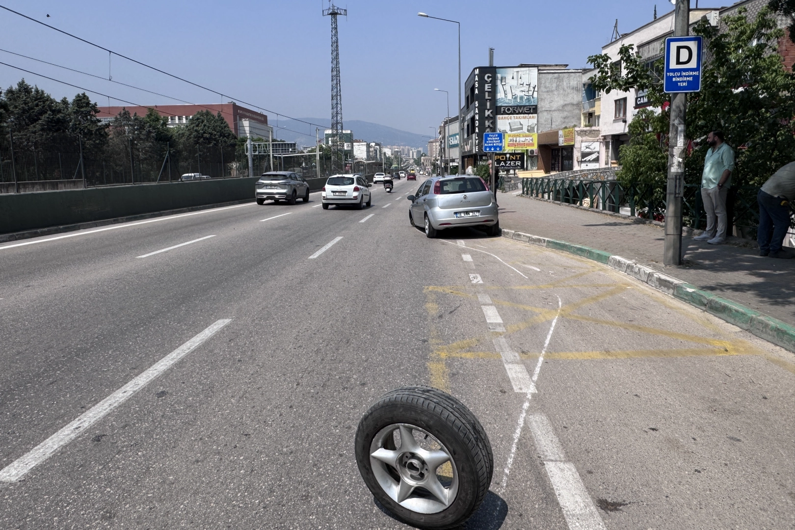 Ankara Yolu Caddesi'nde seyir halinde olan 16 BNN 347 plakalı otomobilin sol ön tekeri yerinden çıktı.