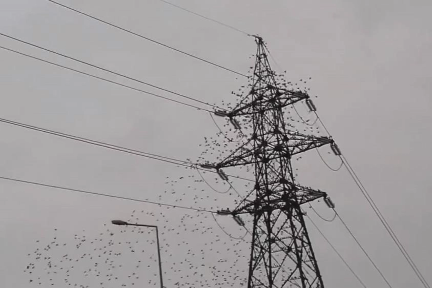 Elektrik direklerine ve tellerine konan yüzlerce sığırcık kuşu görsel şölen oluşturdu.