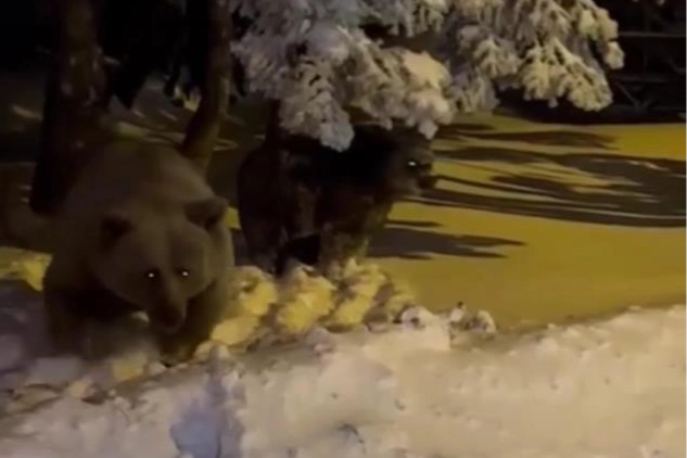 Araçtan ayılara bir süre seslenen kişiler, anne ayıyı tedirgin edince, ayının kendilerine saldırmasıyla korku dolu anlar yaşadı.