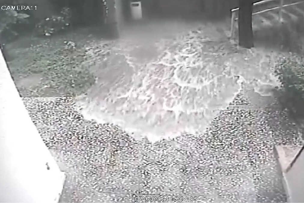 Sel esnasında suların siteyi basması da güvenlik kamerasına saniye saniye yansıdı.