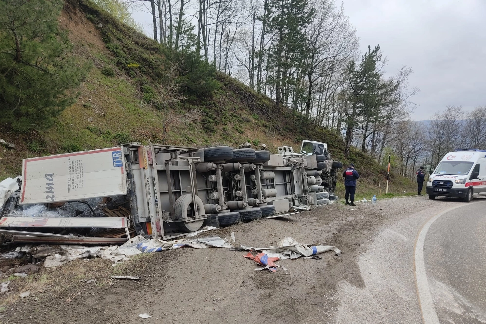 Domaniç istikametinden İnegöl'e seyir halinde olan Murat B.(39) yönetimindeki 16 BUT 870 plakalı su yüklü tır, yokuş aşağı inerken frenlerinin patlaması sonucu sürücüsünün kontrolünden çıktı. Yoldan çıkan tır yamaca devrildi. Kaza yerine 112, jandarma ve itfaiye arama kurtarma ekipleri sevk edildi. Kaza sonucu yaralanan sürücü, tırın camı kırılarak ekiplerce kurtarıldı. Yaralı olay yerine sevk edilen ambulansla İnegöl Devlet Hastanesine kaldırıldı.