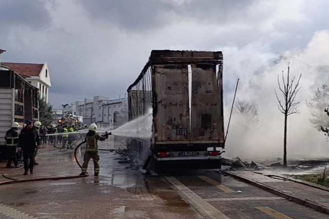 Kısa sürede büyüyen alevler, hemen yanında park halinde bulunan mobilya yüklü 16 BDD 870 plakalı dorsenin de tutuşmasına neden oldu.