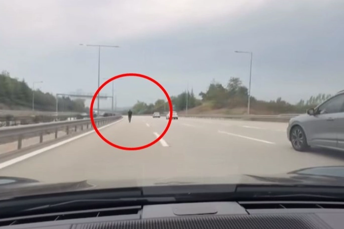 Osmangazi ilçesi Demirtaş Viyadüğü'nden İzmir istikametine seyir halinde olan otomobilin sürücüsü, sol şeritte yolun ortasında yürüyen yayayı son anda fark edip, manevra yaparak sağ şeride geçti.