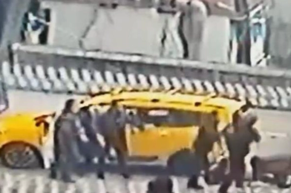Taksici bir süre ilerledikten sonra zıtlaştığı motosiklet sürücüsü için araçtan kavgaya tutuştu.