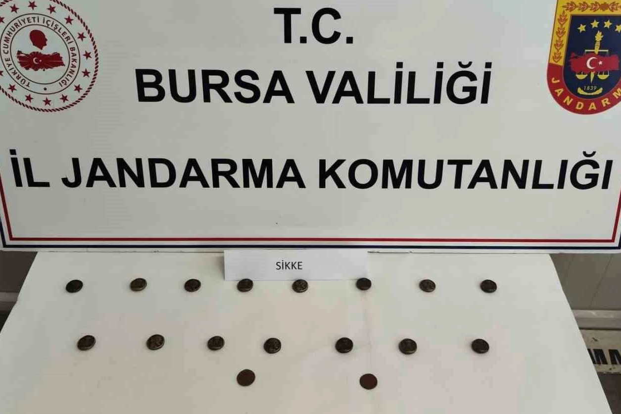 Bursa İl Jandarma Komutanlığı İstihbarat Şube Müdürlüğü ile İnegöl İlçe Jandarma Komutanlığı ekipleri, bir şahsın İstanbul’dan İnegöl’e tarihi eser satmak amacıyla geleceğini tespit etti. Ekipler, C.Ç. isimli şüpheliyi ilçe merkezinde yapılan operasyonla gözaltına aldı. Şüphelinin üzerinde yapılan aramada, Bizans ve Roma dönemlerine ait 17 adet bronz ve 5 adet altın sikke ele geçirildi. Ele geçirilen eserlerin yasa dışı yollardan 100 bin dolara satılmak istendiği öğrenildi.