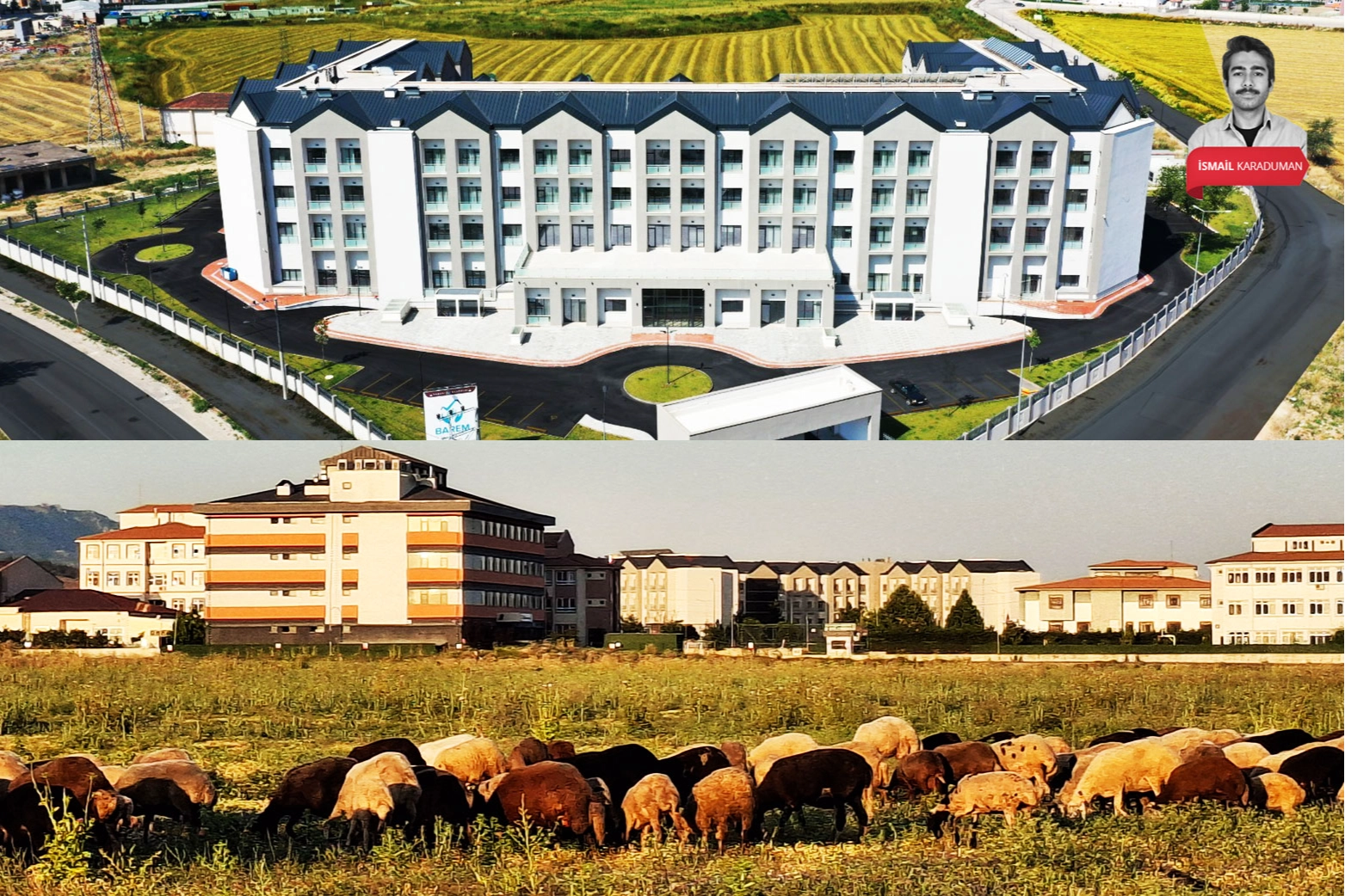(Etrafı tarım alanları ve boş arazilerle çevrili tesisin yakınlarında bir çoban, koyunlarını otlatıyor.)